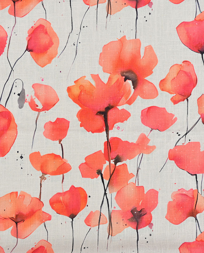Ramie Linen Digital Poppy Flower 6069-1338