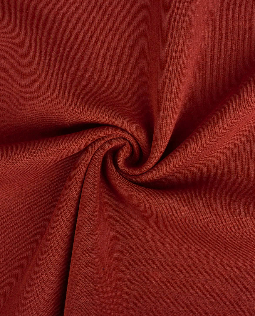 Sweat fabric, or jogging fabric, is a knitted fabric just like jersey but a lot thicker and heavier. Sweat fabric is produced in the same way as French terry but the reverse side is brushed. For this reason, the fabric is soft and retains warmth well. This fabric is used for hoodies and jogging suits, among other things.