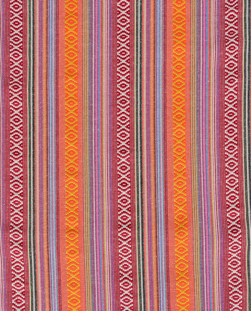 Our Mexico fabric is a woven fabric. The stripes and patterns are woven in. This fabric is used for tablecloths, clothing or other accessories, among other things, and is very strong.